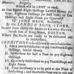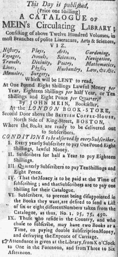 A CATALOGUE OF MEIN’s CIRCULATING LIBRARY; CONSISTING Of above Twelve Hundred VOLUMES, in most Branches of polite Literature, Arts and Sciences; VIZ. Continue reading Mein’s Circulating Library