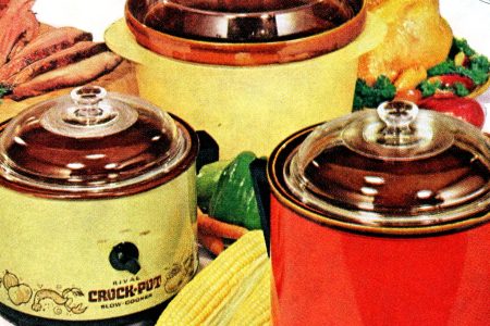 Modern slow cookers come in all sizes and colors with various bells and whistles, including timers and shut off mechanisms. They also come with a serious design flaw, that being the lack of a proper domed lid.