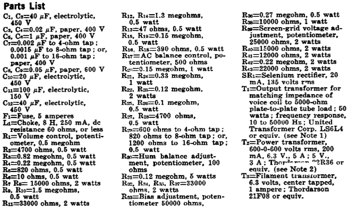 50 Watt Amp Circuit – Parts List