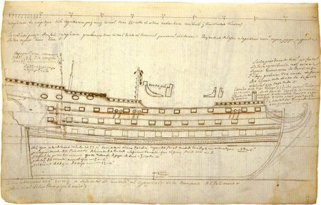 Figure 7: Drawing of a Spanish two-decker around 1700. Archive of Sevilla.