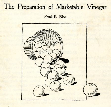 Formerly vinegar was prepared on the farm to a greater extent than now. The introduction of laws for the control of the sale of vinegar, altho intended to help the honest manufacturer, has discouraged the preparation of vinegar for sale in a small way, not because it is difficult to meet the requirements but because some care must be taken in the operation in the order that the finished product comply therewith.